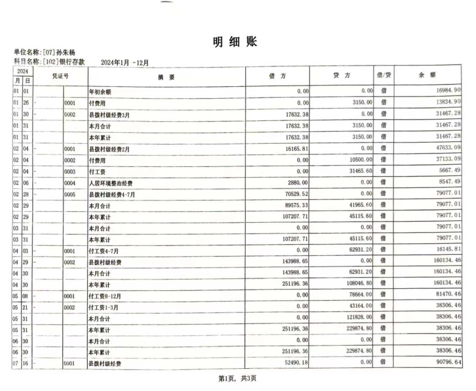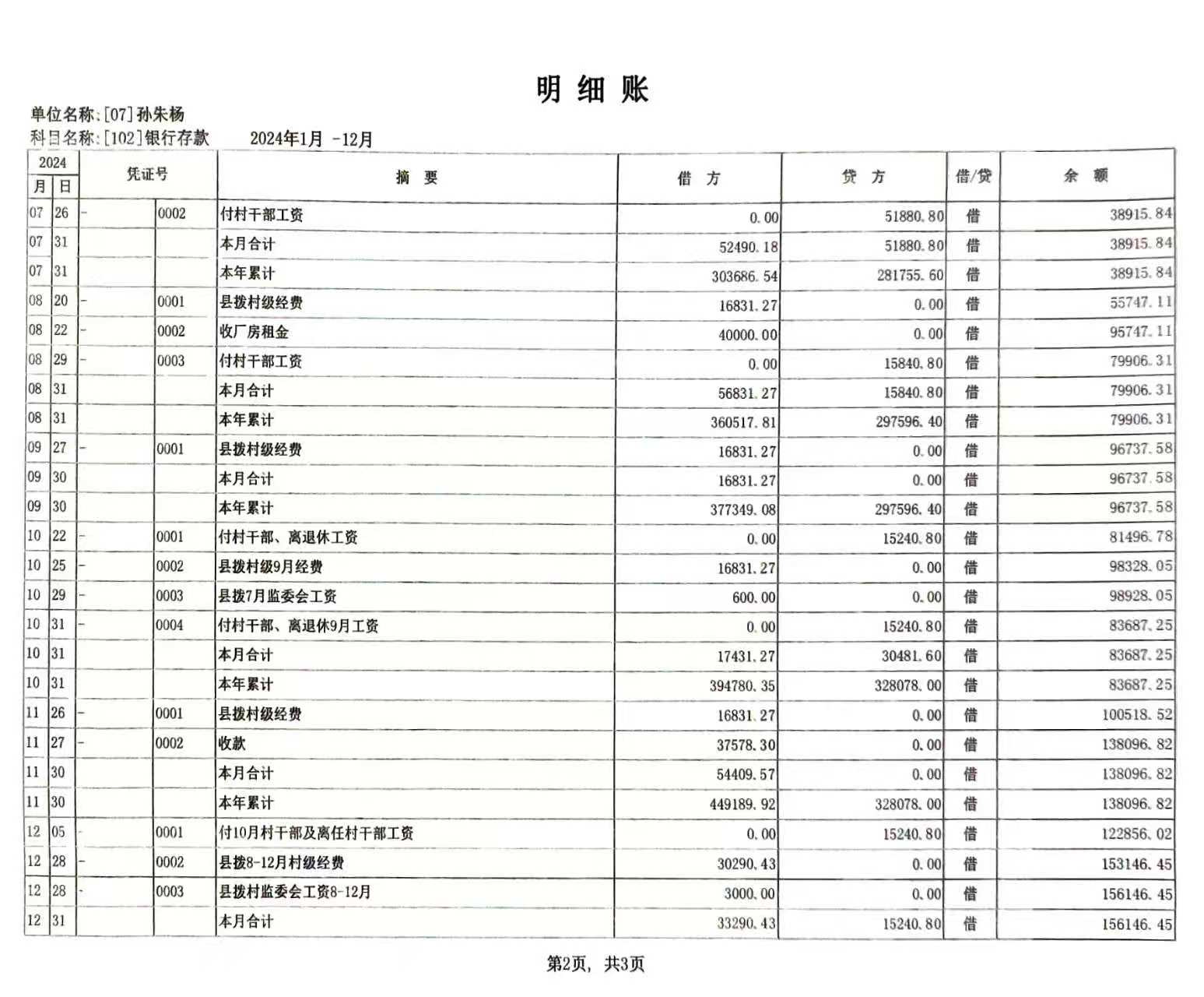 瓦屋头镇2024年孙朱杨村级财务公开